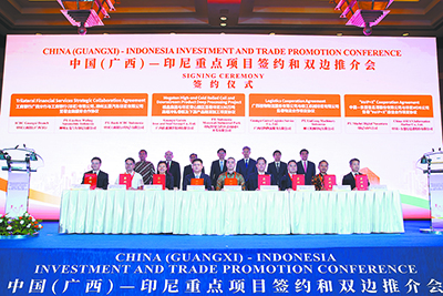 集團(tuán)公司黨委書記、董事長(zhǎng)鄭津作為簽約企業(yè)代表受邀參加會(huì)議,與來(lái)自廣西各地市、重點(diǎn)園區(qū)的代表,及印尼政商界人士齊聚一堂,暢敘合作新機(jī)遇。
