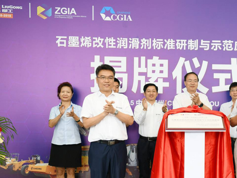5 月31 日上午,由中國石墨烯產(chǎn)業(yè)技術(shù)創(chuàng)新戰(zhàn)略聯(lián)盟與股份公司共建的“石墨烯改性潤滑劑標準研制與示范應(yīng)用基地”揭牌儀式在公司全球研發(fā)中心圓滿舉行。柳州市副市長王偉、集團公司副總裁黃建兵、中國石墨烯產(chǎn)業(yè)技術(shù)創(chuàng)新戰(zhàn)略聯(lián)盟秘書長李義春出席儀式并致辭。中國計量科學研究院、柳州市工信委、柳州市科技局領(lǐng)導(dǎo), 以及全國石墨烯行業(yè)科研、制備、應(yīng)用、檢測認證、知識產(chǎn)權(quán)等相關(guān)機構(gòu)專家50余人參加了本次活動。