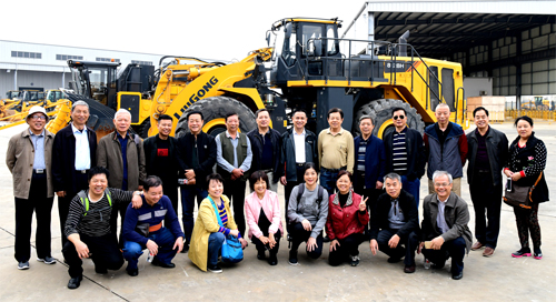 老領(lǐng)導(dǎo)們興致勃勃地在柳工大型裝載機(jī)前合影留念